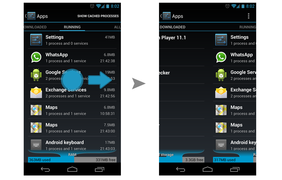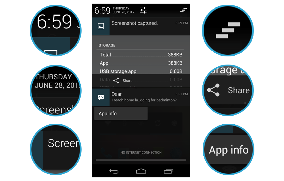 An improved Notification Centre in Jelly Bean. Date and Time and now slightly more emphasized. Title texts in the notification used Roboto light font, and font size has been pushing up a little bit. There is also a new Dismiss All button at the Right Upper corner. For the notification that you can interact, you can immediately do the interaction within the Notification Centre. Also, at the notification centre, you can long press an item and access the App info immediately, very useful to turn off the notification.