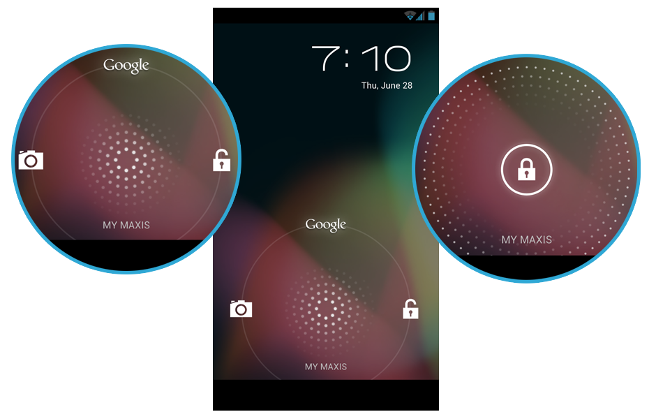 Turn on the screen after it’s locked, and you can see the new wave pattern and animation from the unlock button. The pattern follows your finger when you slide the unlock button around, very fun to play with. The pattern feels like a microphone.