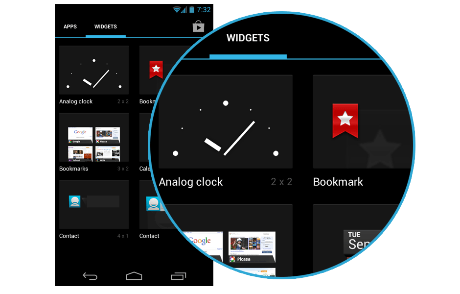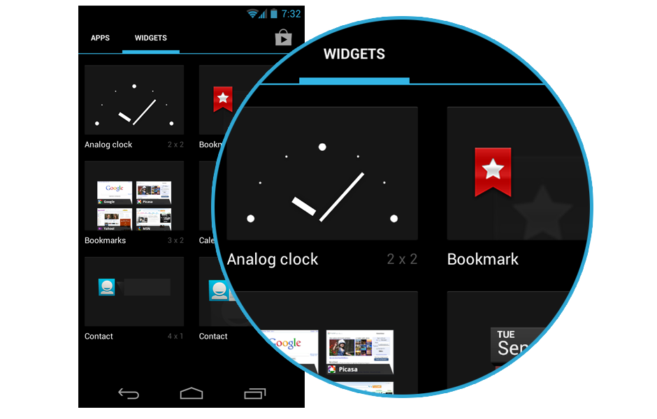 In the Homescreen, the new design of Search Bar (which has been leaked from Google I/O app screenshots) catch your eyes. Compared to the one in ICS, I personally think that it improves the perceived affordance, making the user more likely to press it.